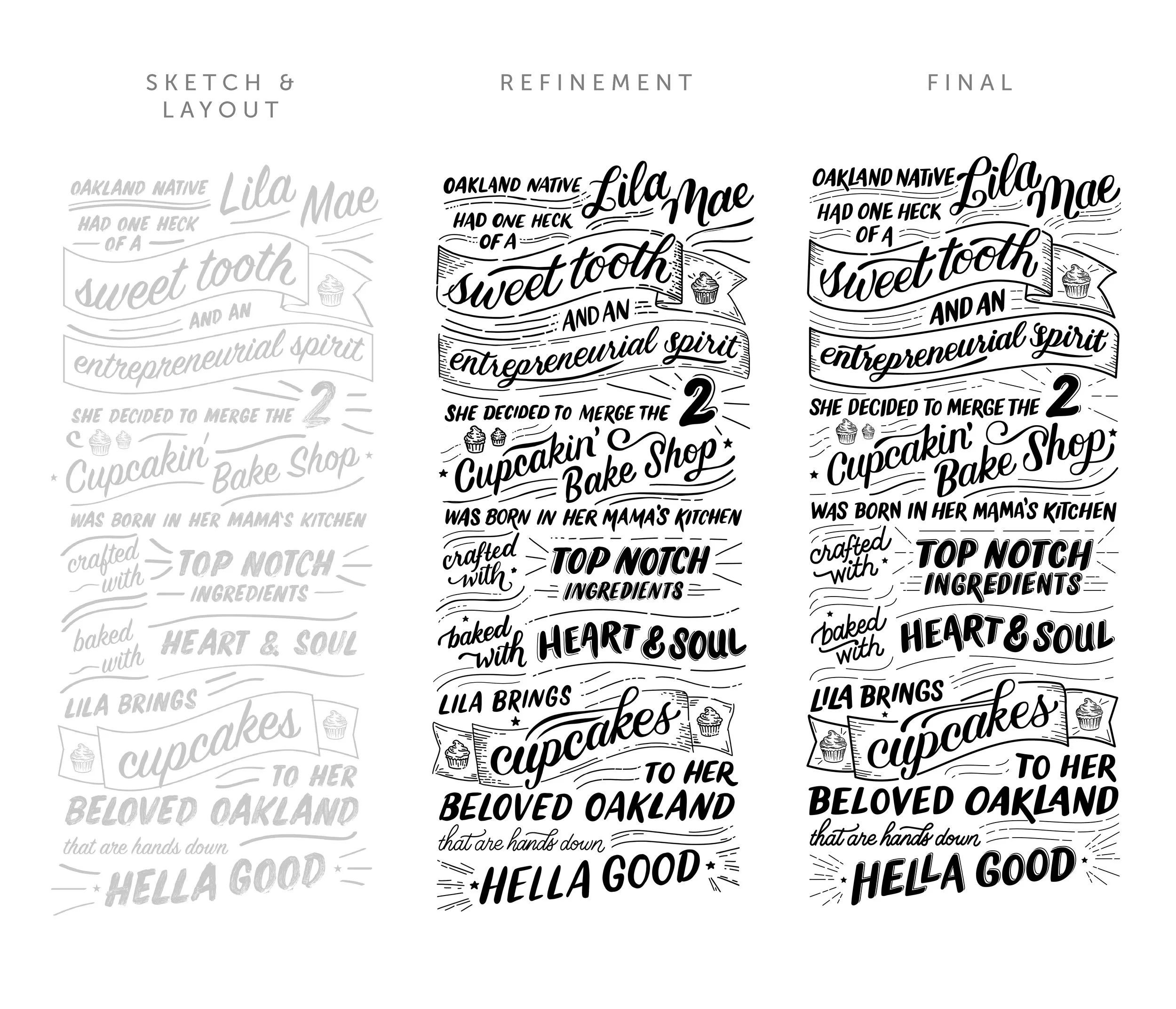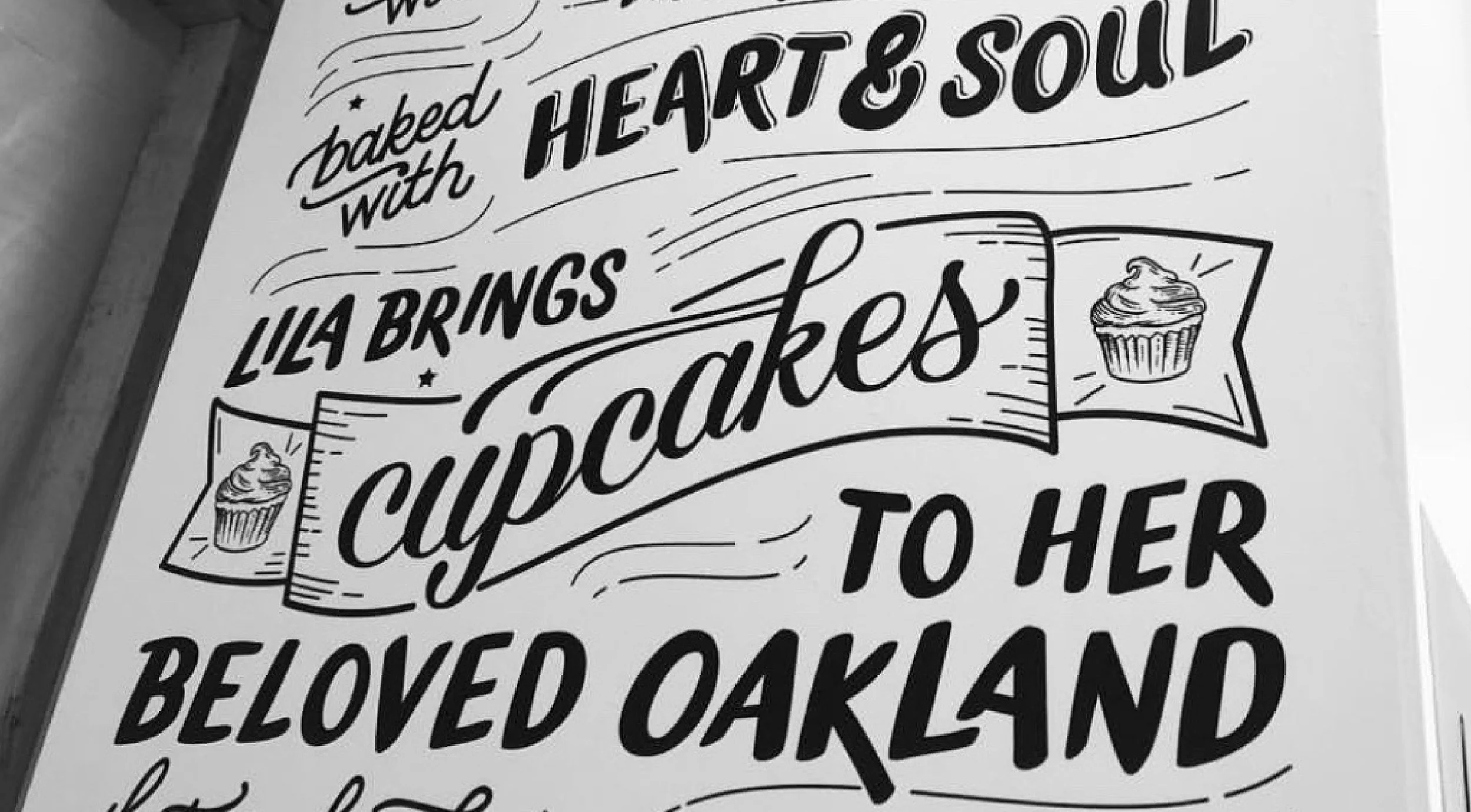 Needless to say, it was so fun to create this illustrated origin story for the Cupcakin’ Bake Shop in California. The client wanted something playful and expressive, but still legible and organized. It’s installed in their Swan’s Market location in Oakland. Go check it out and eat a cupcake for me!