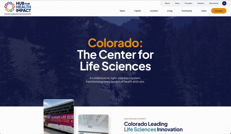 Hub for Health Impact is an exciting collaborative entity bringing together life sciences companies across Colorado to showcase the state as a top destination for talent and innovation. Colorado is bold, community-driven, and passionate—and we wanted the brand to reflect that.