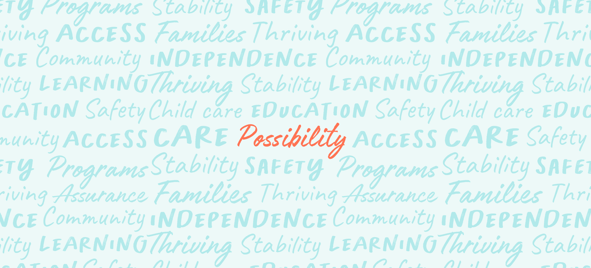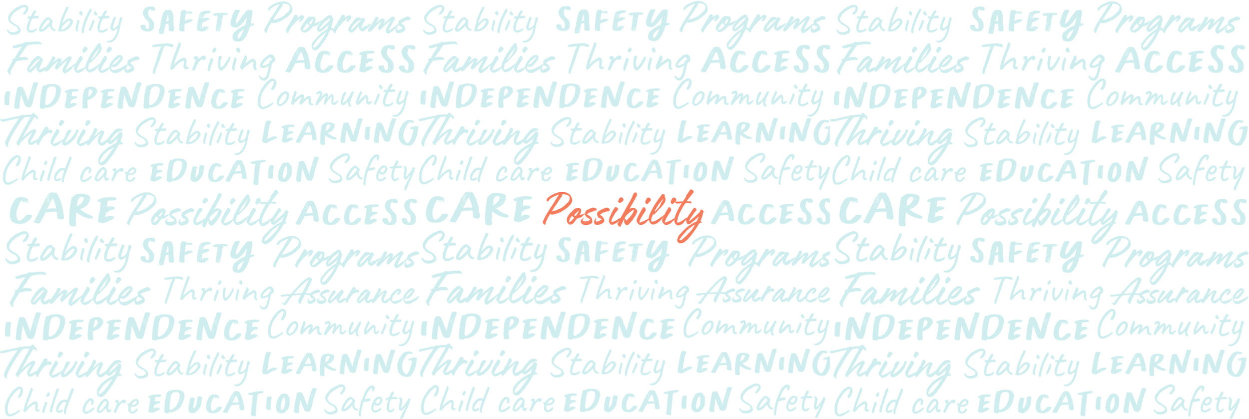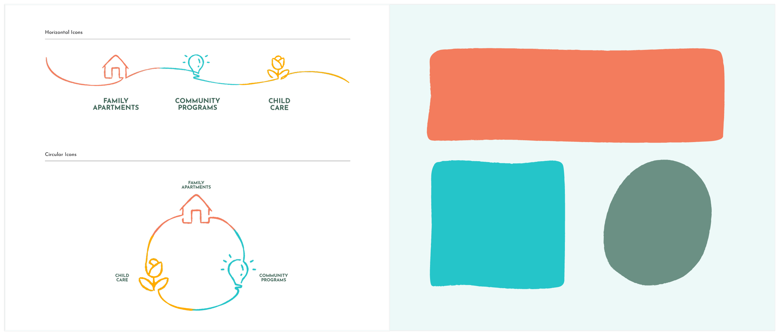 Handdrawn shapes act as content containers to create a sense of approachability and family-centered humanity. Custom icons were created to support the campaign’s three interconnected pillars, visually linking the unique and holistic set of services offered by Marguerite’s Place. A custom, repeatable typographic pattern to illustrate the endless possibilities was also created.
